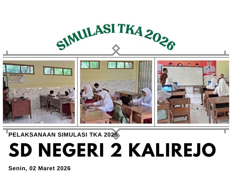 SD Negeri 2 Kalirejo melaksanakan kegiatan Simulasi Tes Kompetensi Akademik (TKA) Tahun 2026 sebagai bentuk persiapan menghadapi ujian yang sesungguhnya. Kegiatan ini diikuti oleh seluruh siswa tingkat akhir dan dilaksanakan di laboratorium komputer sekolah.